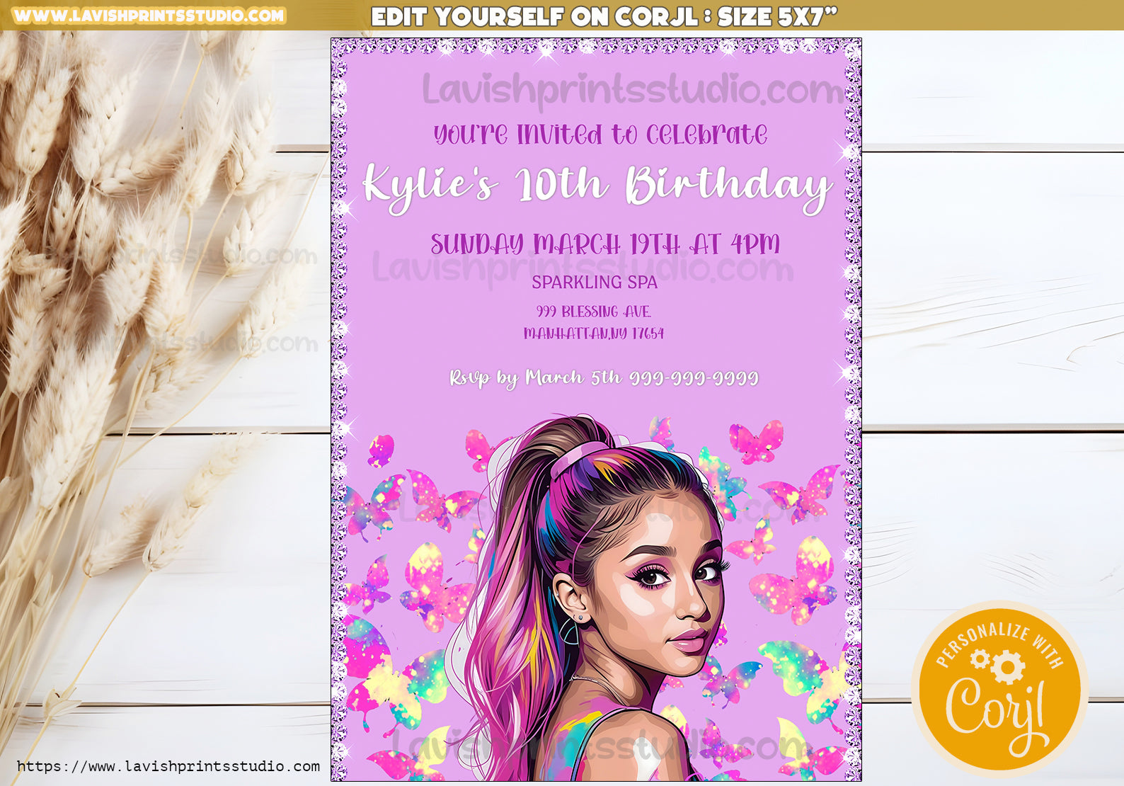 Arianna Grande Birthday Invitations, Editable, Arianna Grande Invitations, Arianna Grande Party Invites