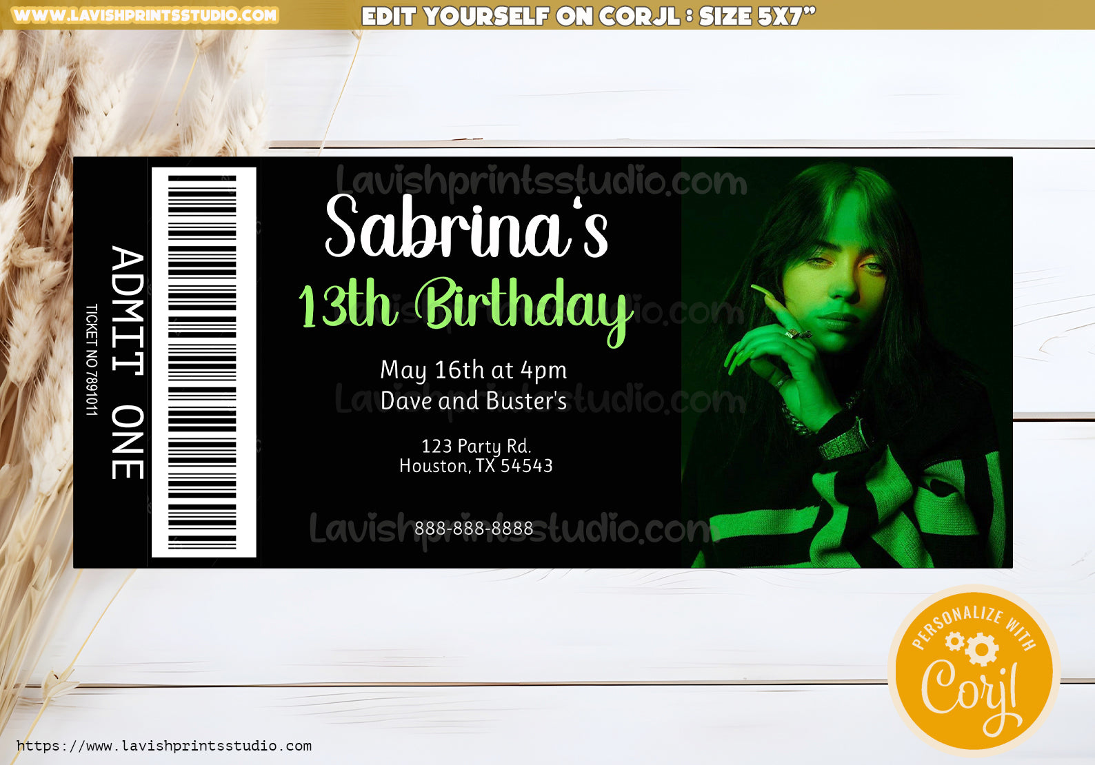 Billie Eilish Invitations, EDITABLE, Billie Eilish Celebration, Billie Eilish Birthday Party Invite