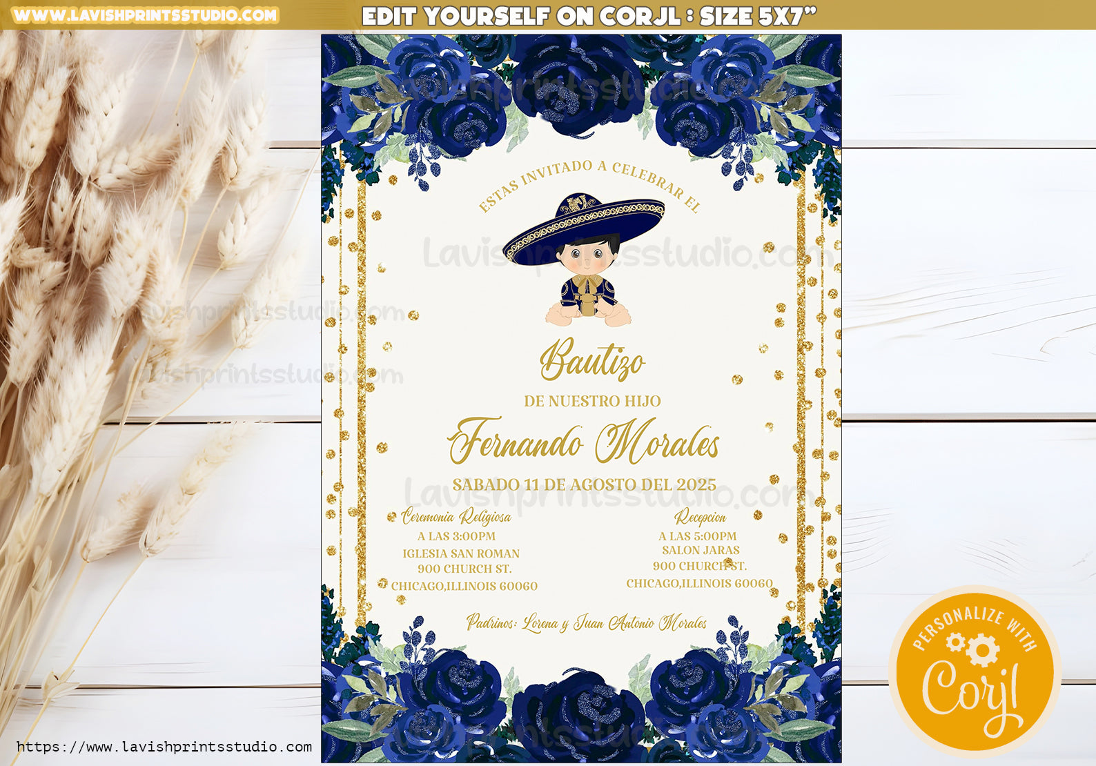 Charro Invitation,Mexican Theme Invites,Spanish Baptism, Charro Theme Bautizo, Invitaciones de Bautizo, Mexican Theme Baptism, EDITABLE