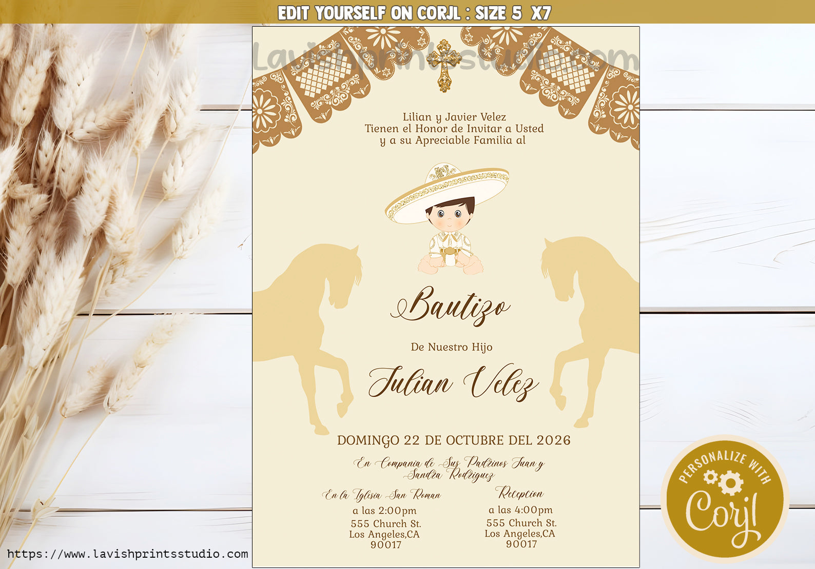 Charro Invitation,Mexican Theme Invites,Spanish Baptism, Charro Theme Bautizo, Invitaciones de Bautizo, Mexican Theme Baptism, EDITABLE