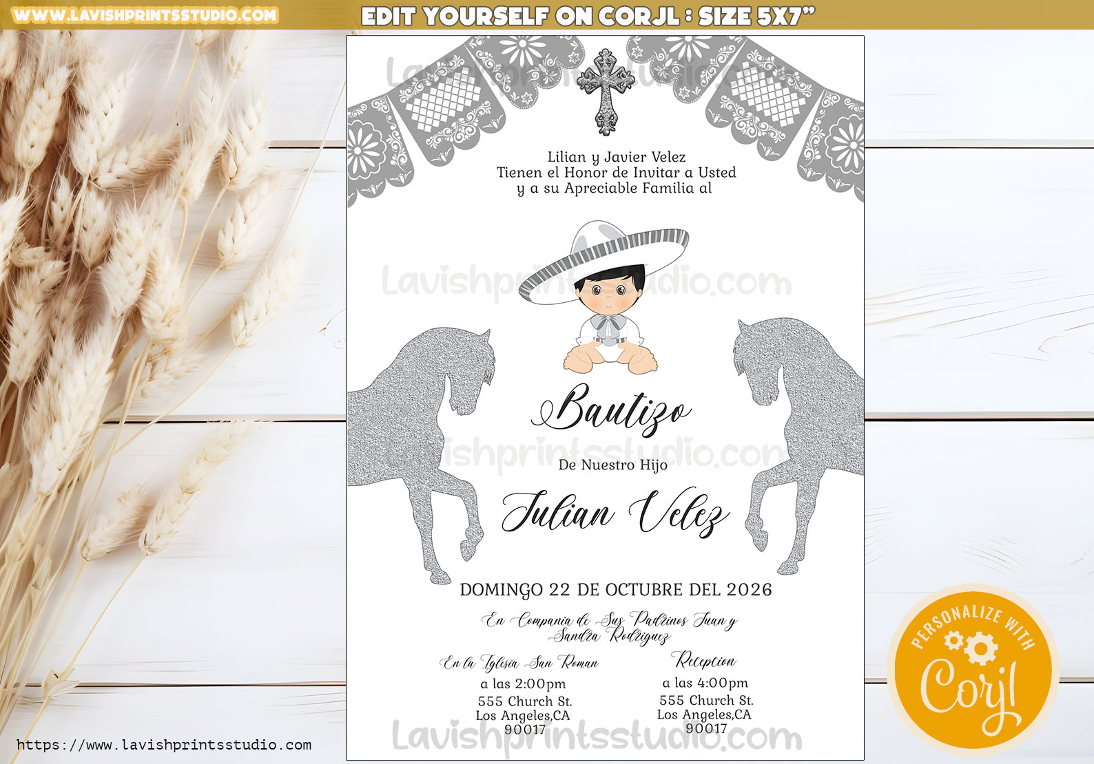 Charro Invitation,Mexican Theme Invites,Spanish Baptism, Charro Theme Bautizo, Invitaciones de Bautizo, Mexican Theme Baptism, EDITABLE