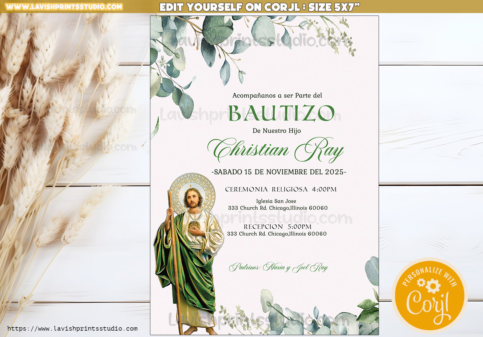 EDITABLE San Judas Invitation, Baptism Invites, San Juditas Invites, Bautizo Mexican Theme, Religious Invites, Invitaciones Bautizo, St.Jude