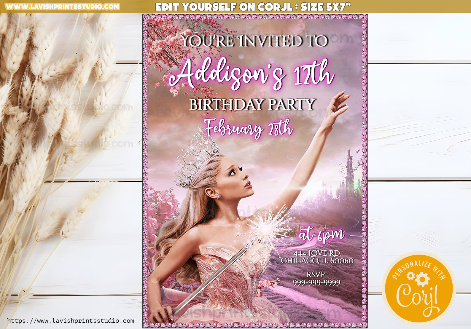 Editable,Wicked Invitation, Wicked Birthday Invitations, Wicked Movie Party Invites, Arianna Grande Party Invites, Arianna Grande Birthday, Galinda Wicked Invitations