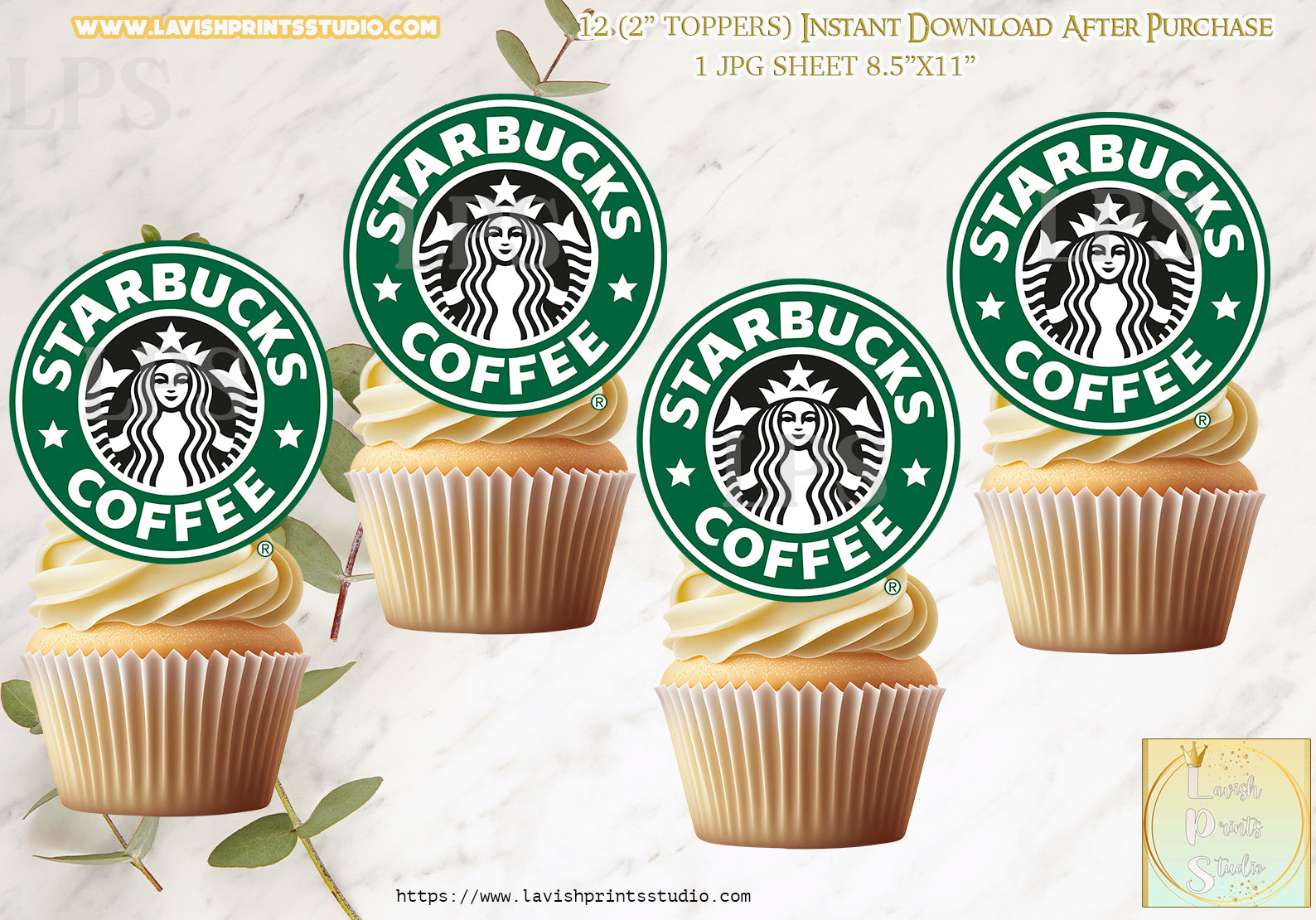 Starbies Cupcake Toppers, Instant Download, Coffee Cupcake Toppers,Instant Download, 2inch Starbucks, Starbucks Toppers, Carmel Latte Toppers